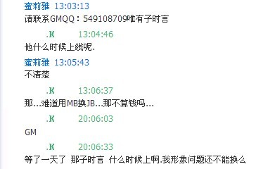 这服的GM不会是这样吧。只管RMB玩家 不冲RMB的 一直装隐身 装看不见。问他也不回复 |